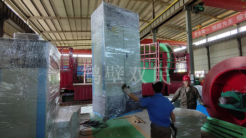 本次共出口2臺礦井提升機。其型號為直徑2米,寬度2米的JK-2.0×2.0P變頻礦井提升機。